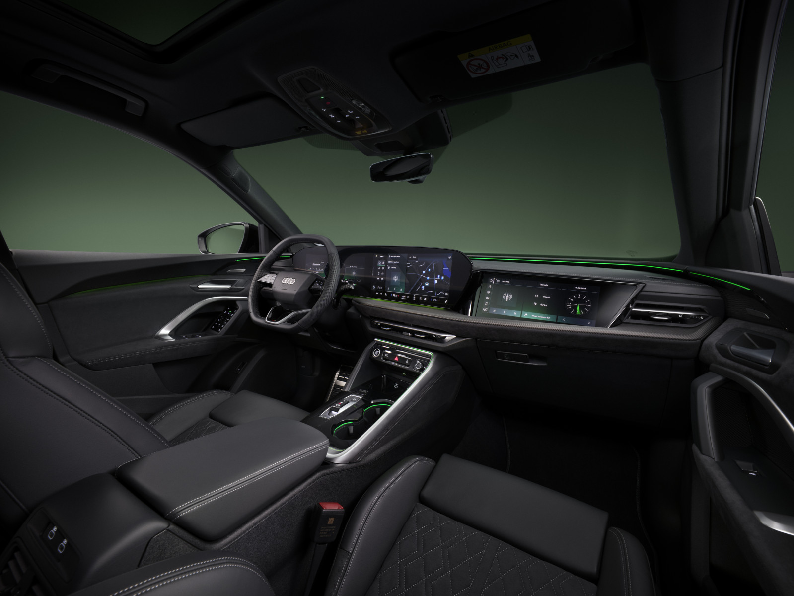 De nieuwe Audi Q5 Sportback deelt zijn interieur met de Audi Q5 SUV. Dat betekent onder meer dat het panoramische Audi MMI display en het MMI passagiersdisplay samen een indrukwekkende én praktische digital stage vormen. De ‘softwrap’ die de inzittenden als het ware omarmt, draagt net als het gebruik van fraaie, hoogwaardige materialen en een perfecte afwerking bij aan het gevoel van luxe en comfort.